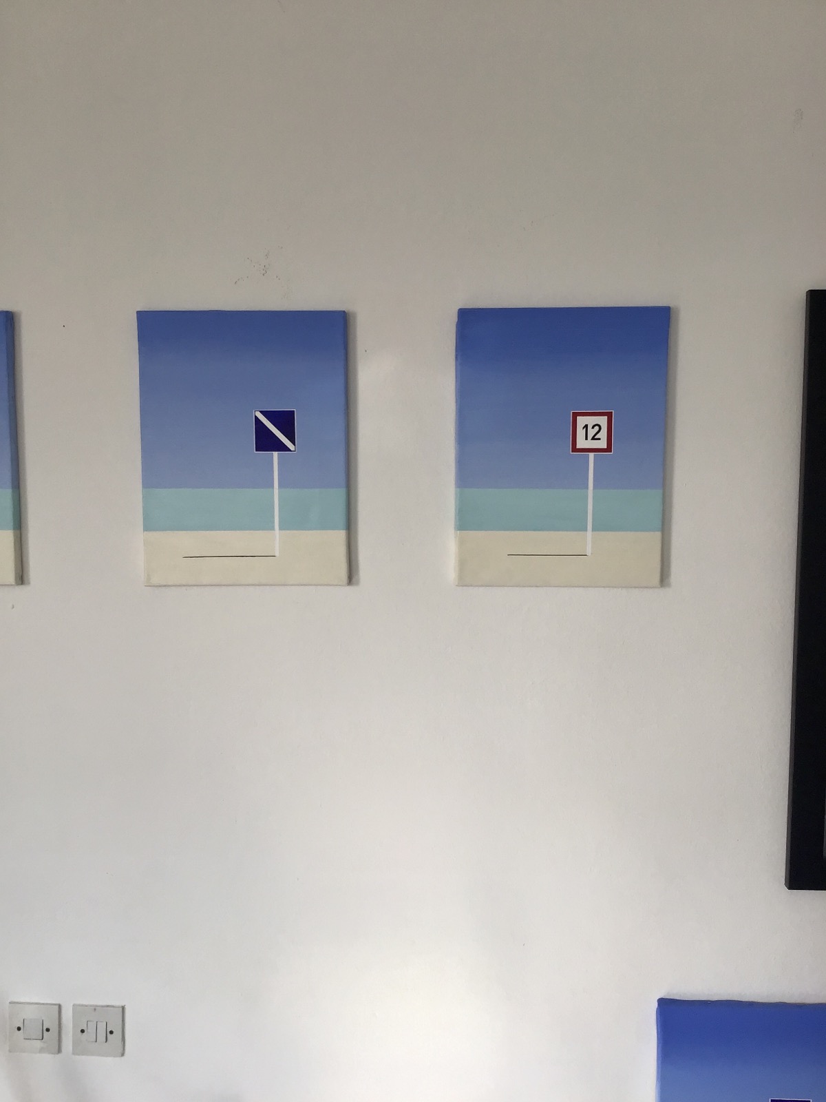 The series consists of multiple matchable and collectible paintings, each featuring stylized signs, numbers, and abstract compositions inspired by coastal environments and nautical systems. These works are designed to be displayed individually or as part of a curated set.