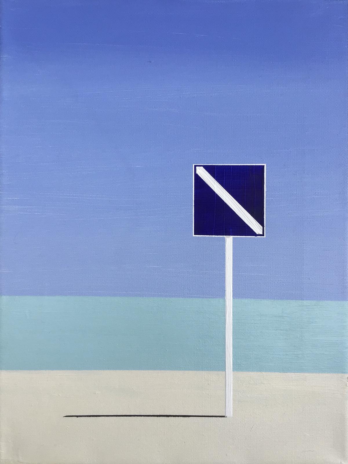 This artwork is part of the original Ship Traffic Signs series by artist Nikola Hajnal. Painted in acrylic on canvas, each piece captures the minimalist geometry and symbolic clarity of maritime signage, reimagined through a contemporary artistic lens.